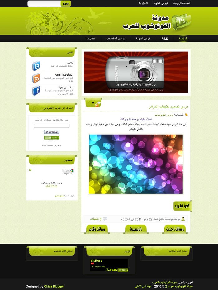 لاول مرة على مدونة الفوتوشوب للعرب قالب باللون الاخضر والاسود هدية لاصحاب مدونات Blogger